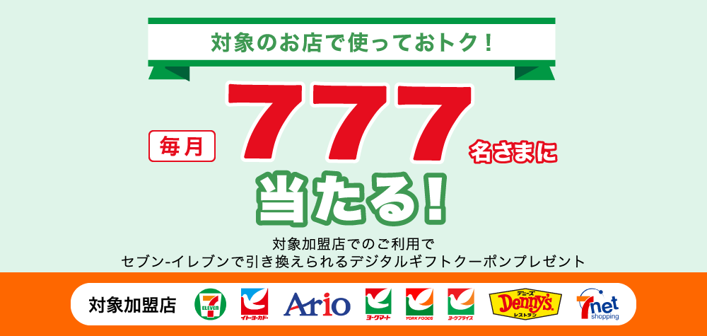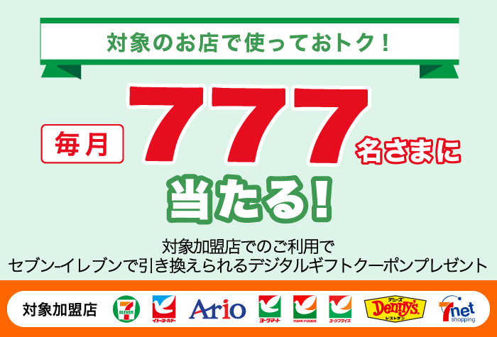 対象のお店で使っておトク!毎月777名さまにデジタルギフトクーポンプレゼント