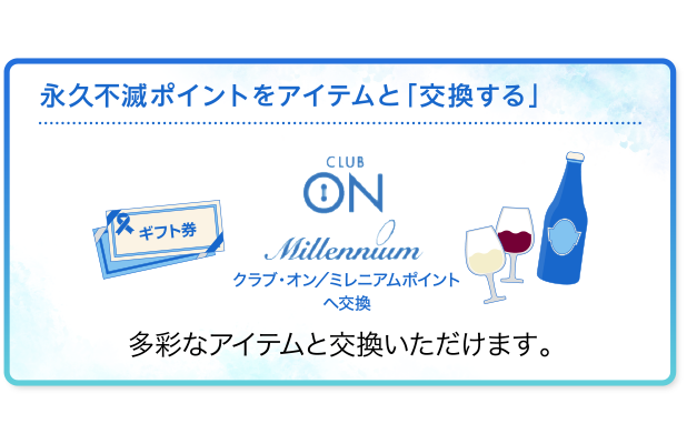 永久不滅ポイントはポイント数に応じて、多彩なアイテムと交換いただけます。